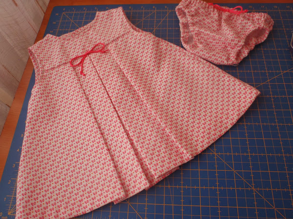 Mirad que vestidito y que braguita he hecho siguiendo el tutorialde http://www.ohmotherminediy.com/. Os recomiendo que lo visitéis y os animéis a hacer algunas de las cosas que propone, está todo muy bien explicado.Ha quedado monísimo, lástima que en las fotos no se aprecia mucho la tela, es piqué blanco con minilacitos en fucsia, muy cuco.He hecho la talla 0-3 meses ylo único que he hecho diferen ...