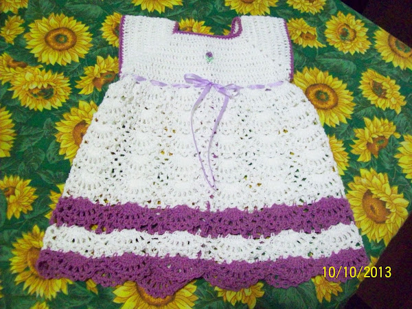 Este es mi primer vestidito hecho a crochet y lo hice con todo cariño para la nieta de una amiga q esta por llegar