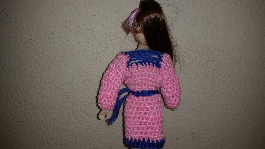 Este precioso vestido esta elaborado con lana rosada y azul, pero claro ustedes ya saben que los colores los pueden combinar como quieran siempre dandole ese toque personal, igual tambien pueden cambiar algunos detalles, como quitarle las mangas para que quede un vestido straples o tubo.