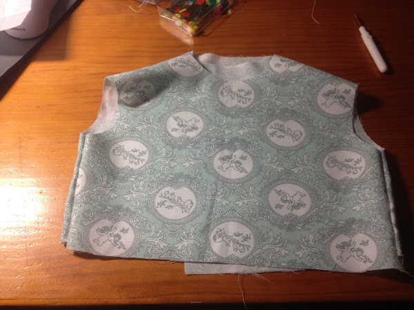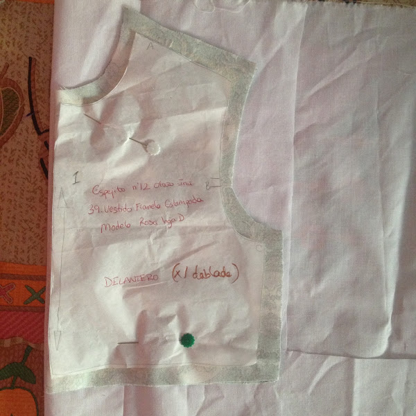 Aquí ya había montado la parte del cuerpo del vestido, encarando los derechos y cosiendo hombros y costados.