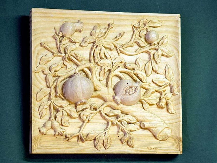 Este precioso relieve del árbol de la granada es la pieza más meritoria de todas las exhibidas en el stand de La Gubia, según opinión del propio autor.