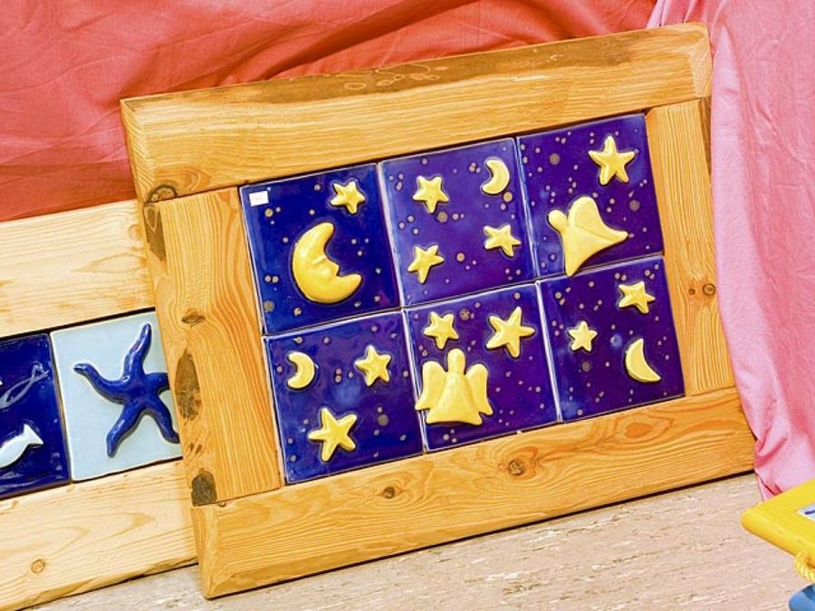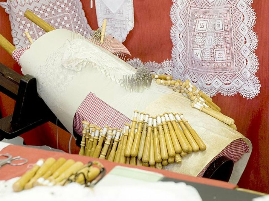 Cerámicas La Gota trajo a la feria un magnífico surtido de piezas adornadas con mosaicos, su especialidad. La elaboración de estos mosaicos requiere paciencia benedictina: los artesanos recortan las piezas una por una, a partir del gresite.El encaje de bolillos estuvo representado por Encajes Melania, un afamado taller de Camariñas, localidad gallega con enorme pujanza en esta tradición. El finísimo trabajo con los hilos acaparó continuos elogios de los visitantes.