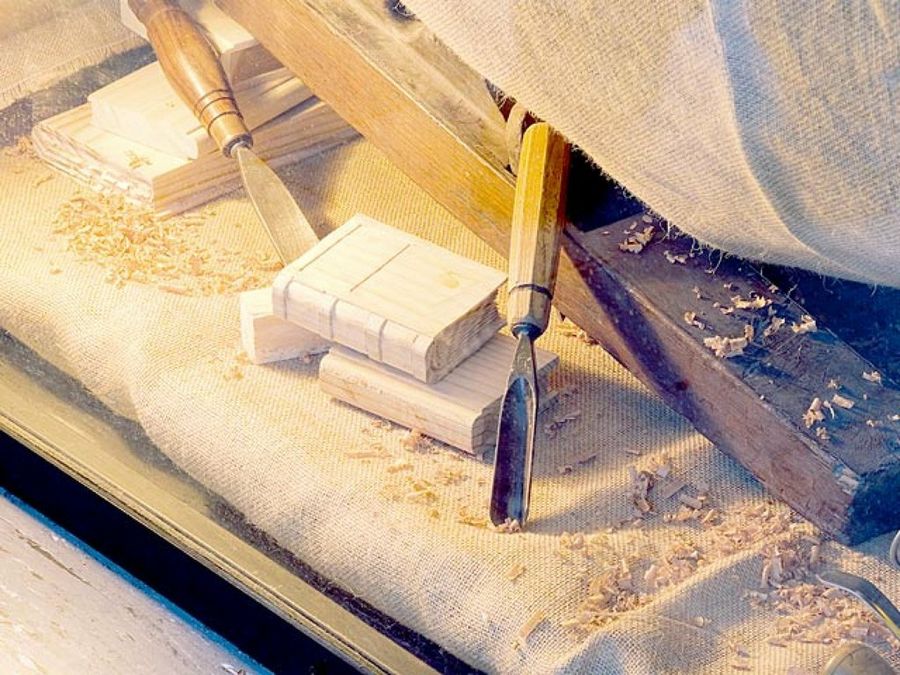 En el stand de La Gubia pudimos deleitarnos con la talla de madera a la antigua usanza. El artesano Saúl Viñas emplea los utensilios y las técnicas de siempre para realizar toda clase de adornos, dotados de innegable sabor clásico.