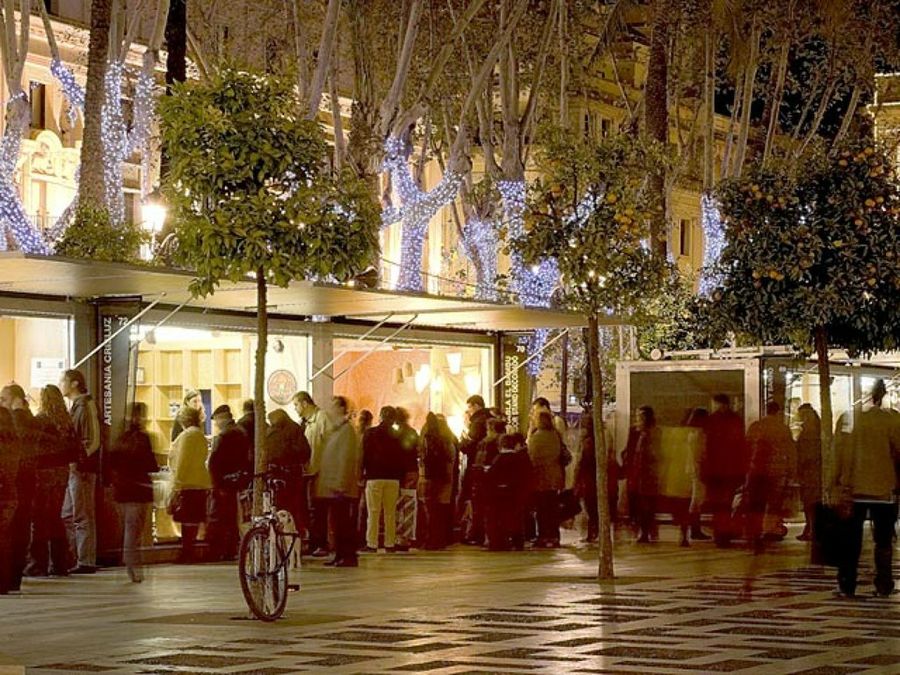 Aspecto nocturno de la plaza. Hemos disfrutado mucho con el paseo, y queremos felicitar calurosamente a los artesanos, agradeciendo todas las facilidades que nos dieron para hacer el reportaje.