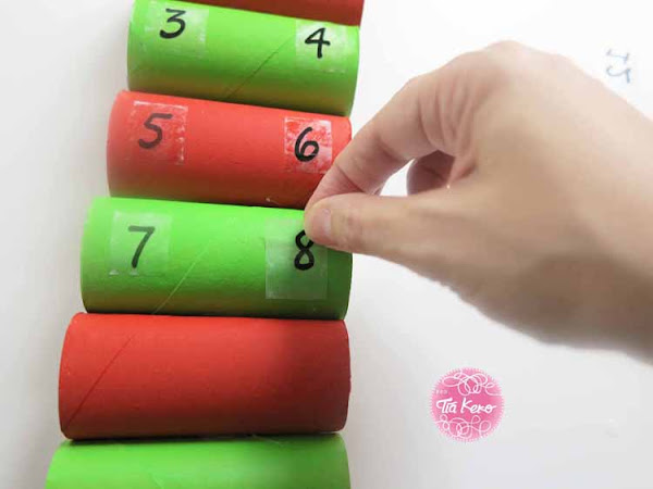 Cuando ya tenemos todos los números pegados, vamos a poner en cada extremos de los rollos de papel un poco de algodón, de esta forma no se caerán los regalitos y chuches que pongamos dentro.