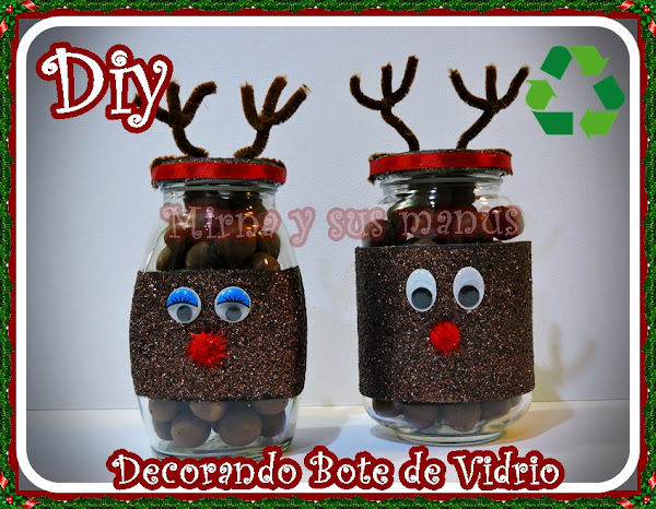 Hoy decoraremos botes de vidrio para regalar con chocolates es super sencillo de hacer, te quedan lindisimos . Solo utilizaremos botes de vidrio de los que tengas, pintura acrilica, diamantina, unos ojitos y un pompon rojo para nariz y los cuernos los haremos con unos limpiapipas . Este trabajo lo vi en una foto hace tiempito y me encantaron. Si te gustan mis trabajos no te olvides de dejar tu co ...