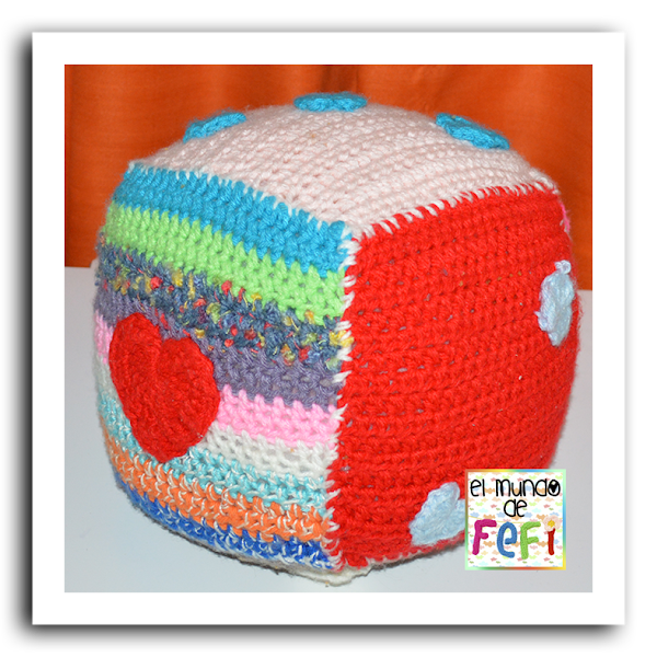 Bien sencillo, tejí 6 cuadrados en punto vareta de 19 cm por lado, y en cada uno le cosí corazones básicos tejidos en distintos colores, para hacer los puntos de los dados y el relleno como siempre muuucho vellón siliconado... Fácil, rápido e ideal para poner manos a la obra!!! Los invito a verlo!!! Espero que les guste!!! Abrazoooos!!! Fefi