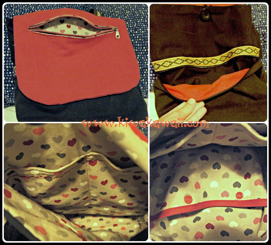 La mochila está pensada para ir a trabajar, así que lleva un total de 5 bolsillos. El de la solapa, uno frontal con cremallera con una cinta que me trajeron de Argentina, y en el interior, uno plano doble, y otro grande con pinzas, solapa y con dos snaps para mantenerlo cerrado. Es el bolsillo pensado para llevar los cargadores de la tablet, del móvil y cables varios, para localizarlos rápido y evitar que se enreden con el resto de cosas. En instagram dejé la fotillo del bolsillo cuando estaba en proceso!