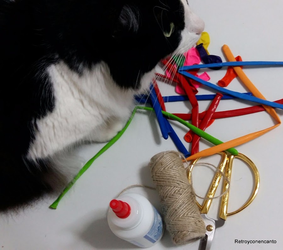 Inflamos los globitos..... y los rodeamos con el cordel de manera desordenada.