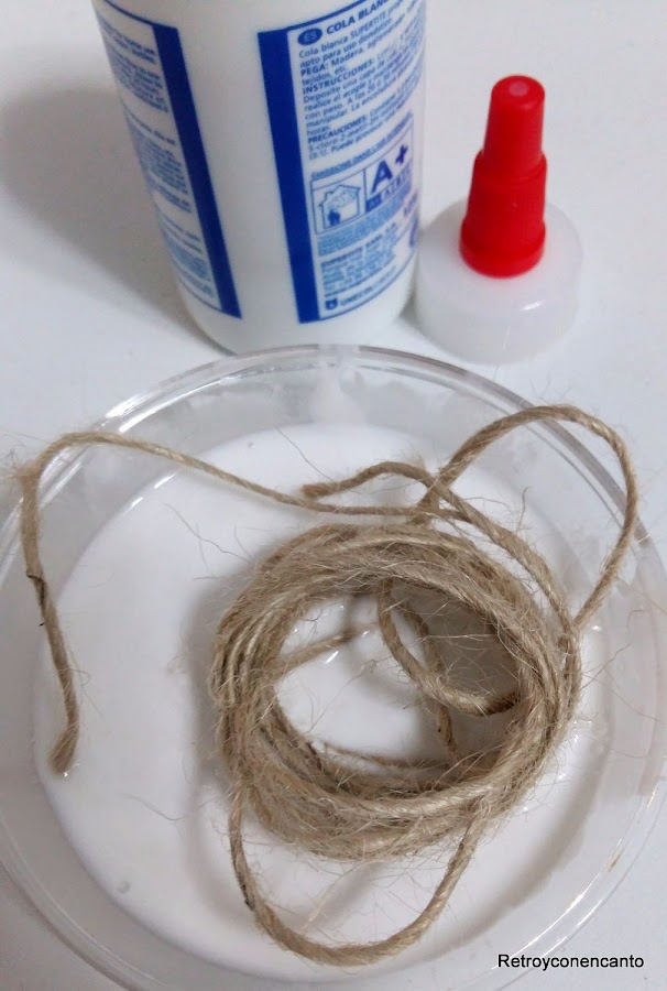 Cola blanca diluida en agua y cuerda rústica eran la mezcla perfecta para nuestra idea.