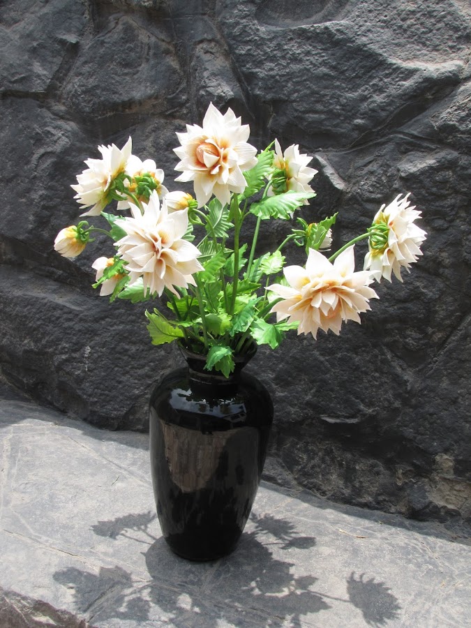 After some time away, I come back with my most recent work. I made these dahlias at a client´s request and, I believe, will look great in her house.