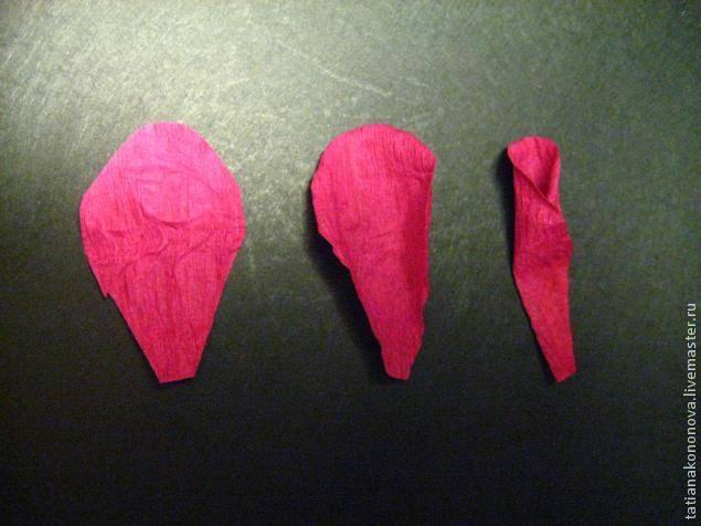 Recortamos los pétalos de papel crepé y los enrollamos pegando el extremo con la cola sintética.