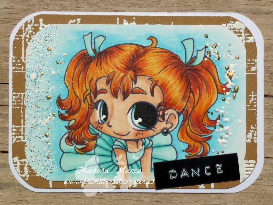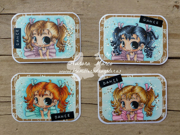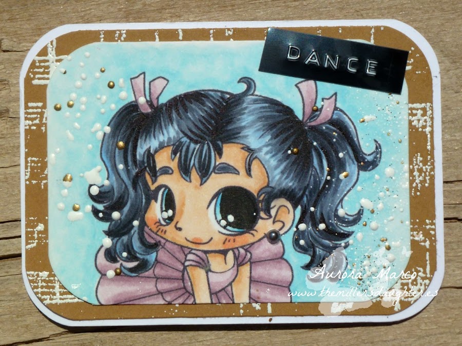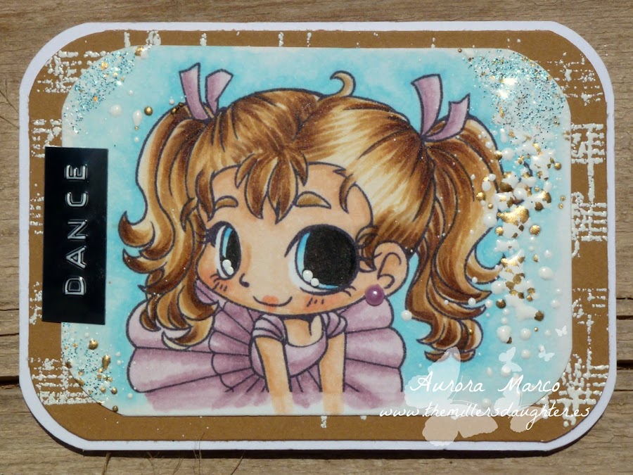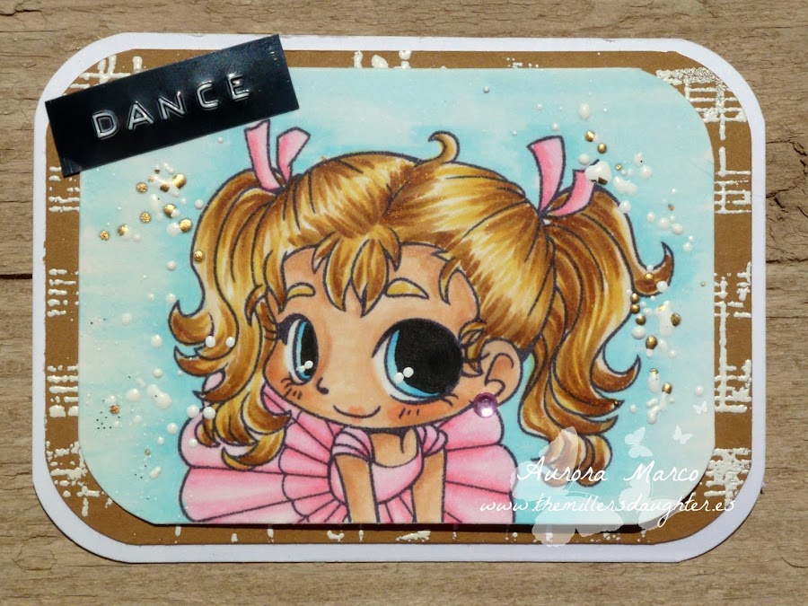 For all the ATCs I used Chibi Ballerina Lineart by YamPuff. Whita and craft card. Dymo machine, frantage, white embossing powder, music stamp and some bling.