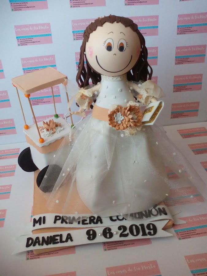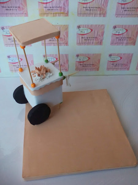 Base personalizada con carrito dulcero para Comunión.