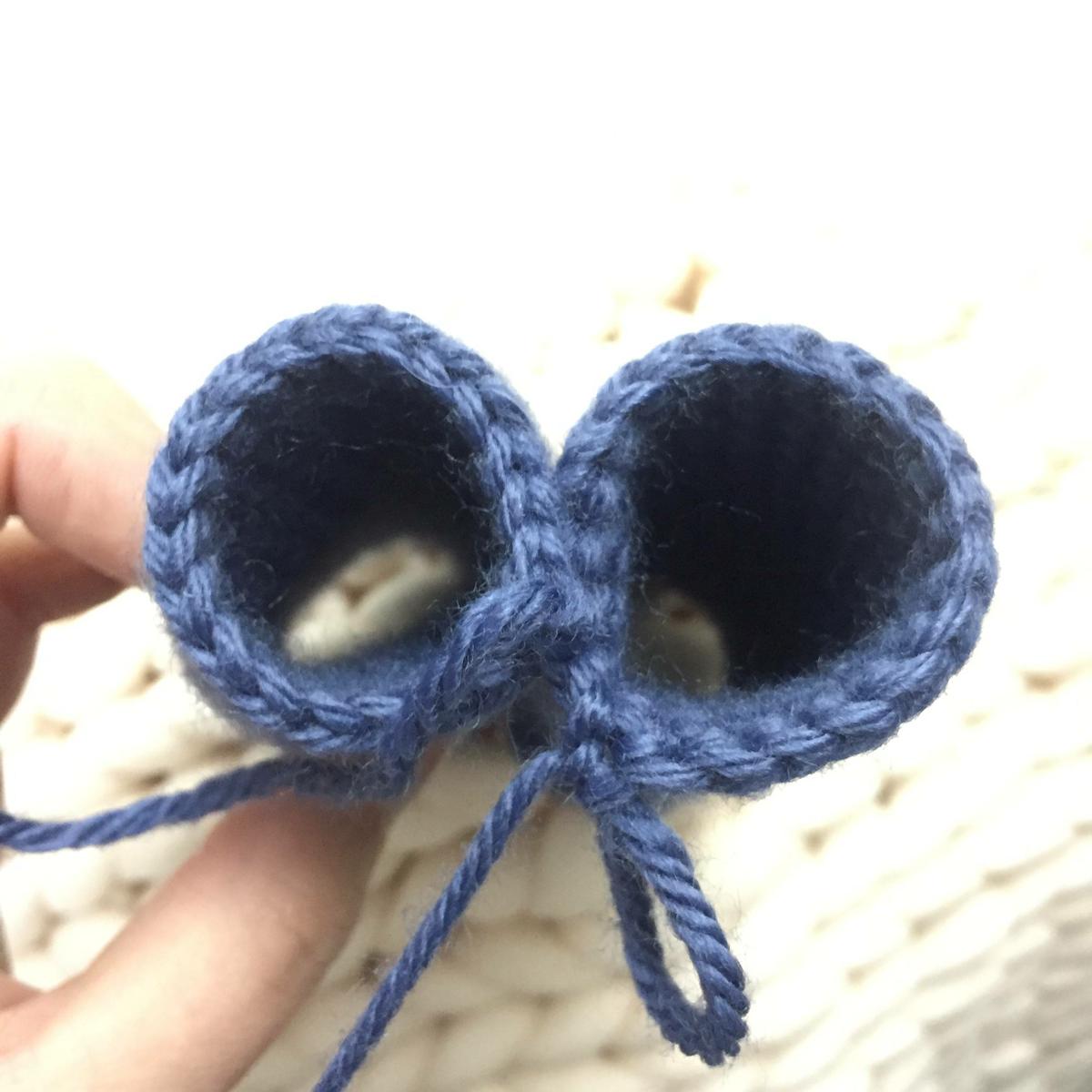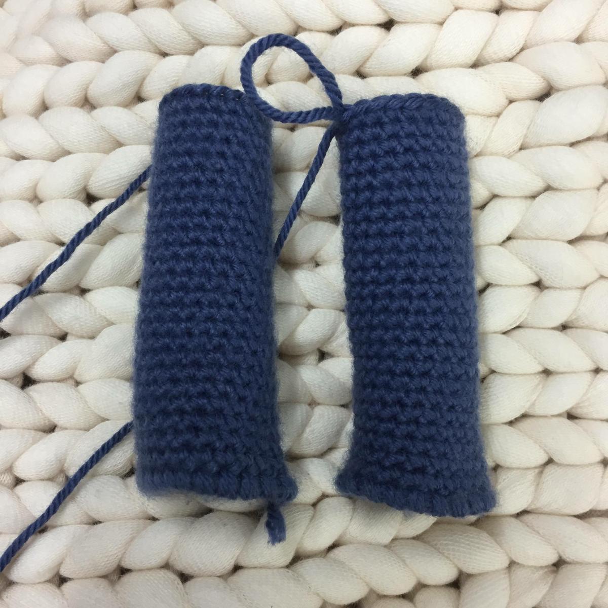 Cortar la hebra un poco larga para poder coser luego y rematar para hacer la 2ª pierna igual que la 1ª pierna