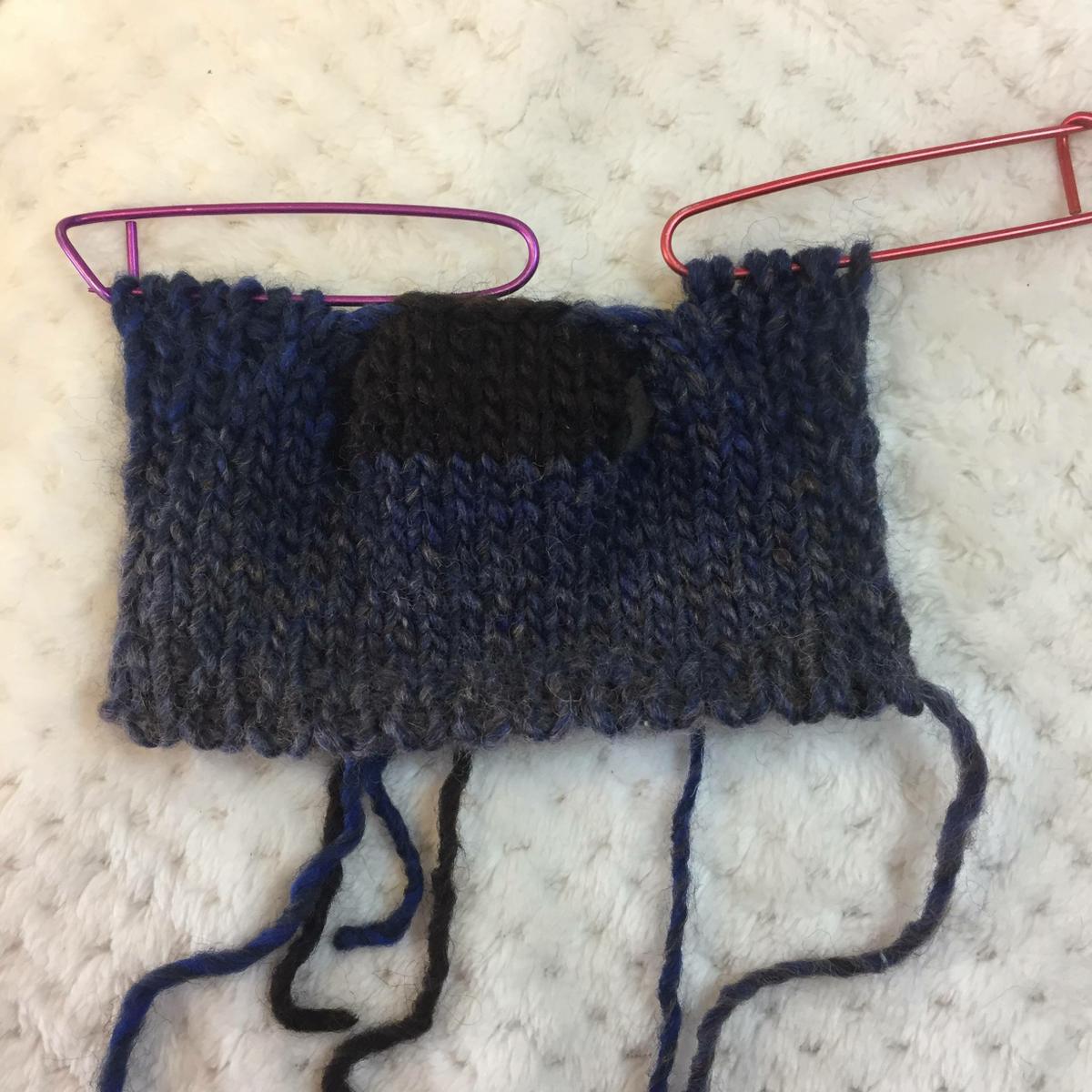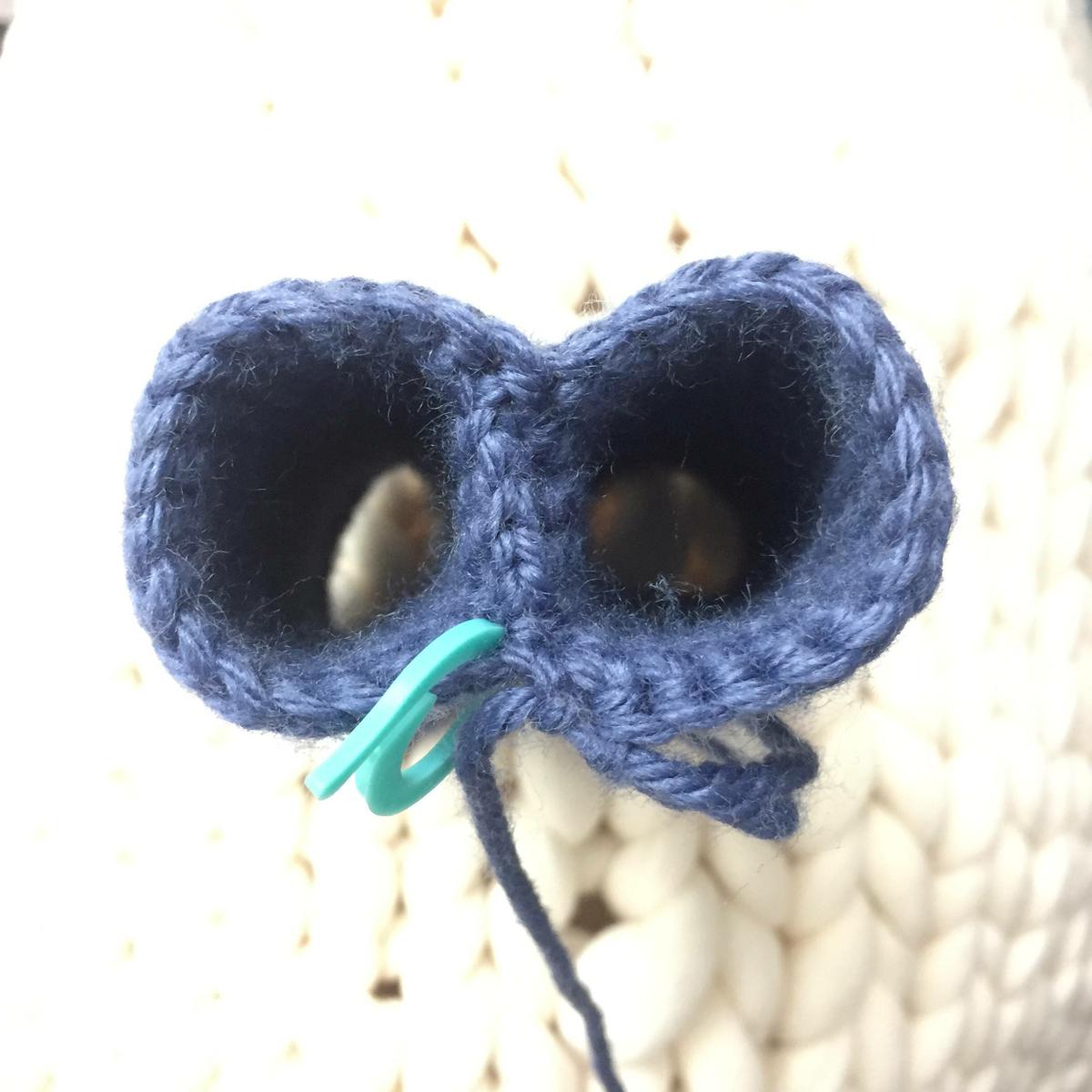 Colocar los ojos entre las vueltas 73 y 74, con 9 puntos de diferencia. Rematar el hilo