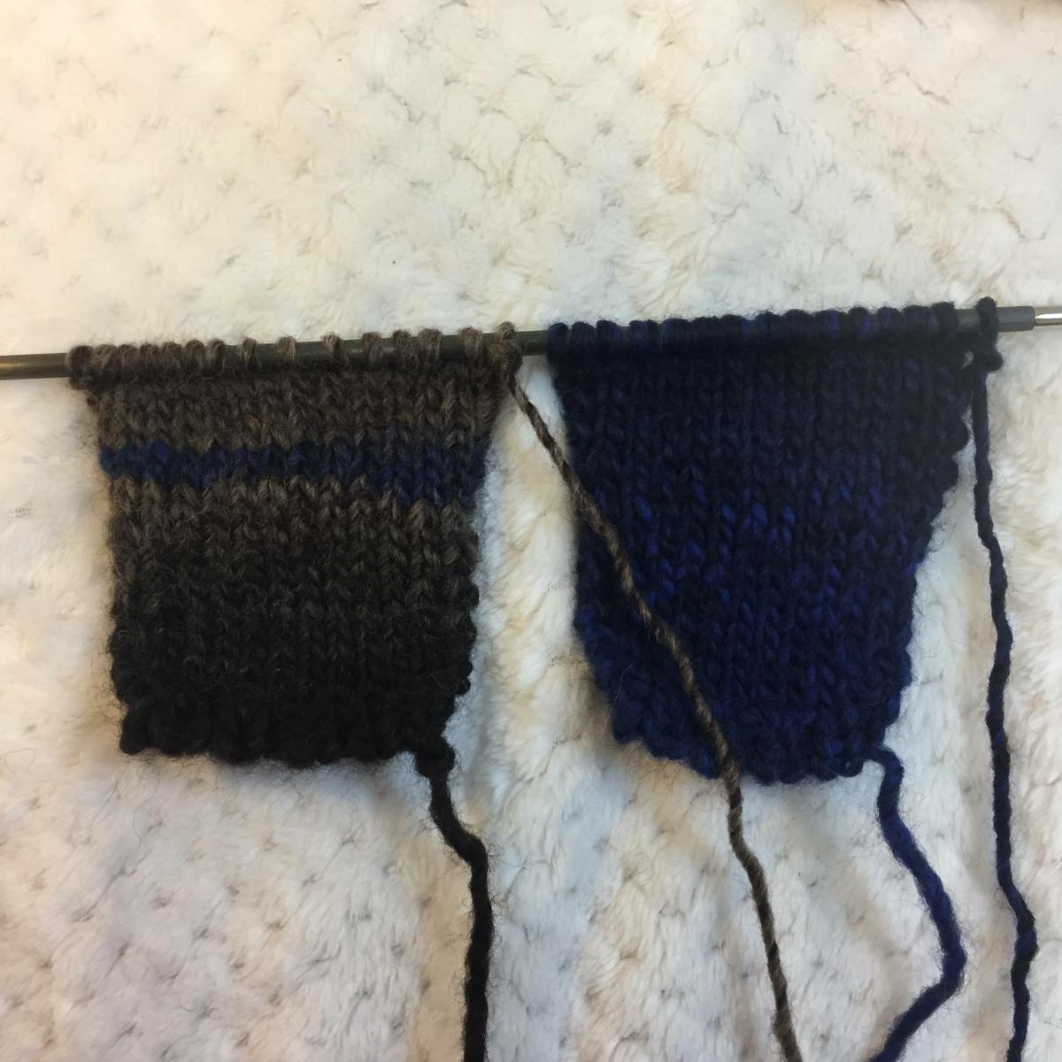 Cambiar a punto jersey derecho y en la primera vuelta hacer 1 aumento en ambos lados (14 puntos)