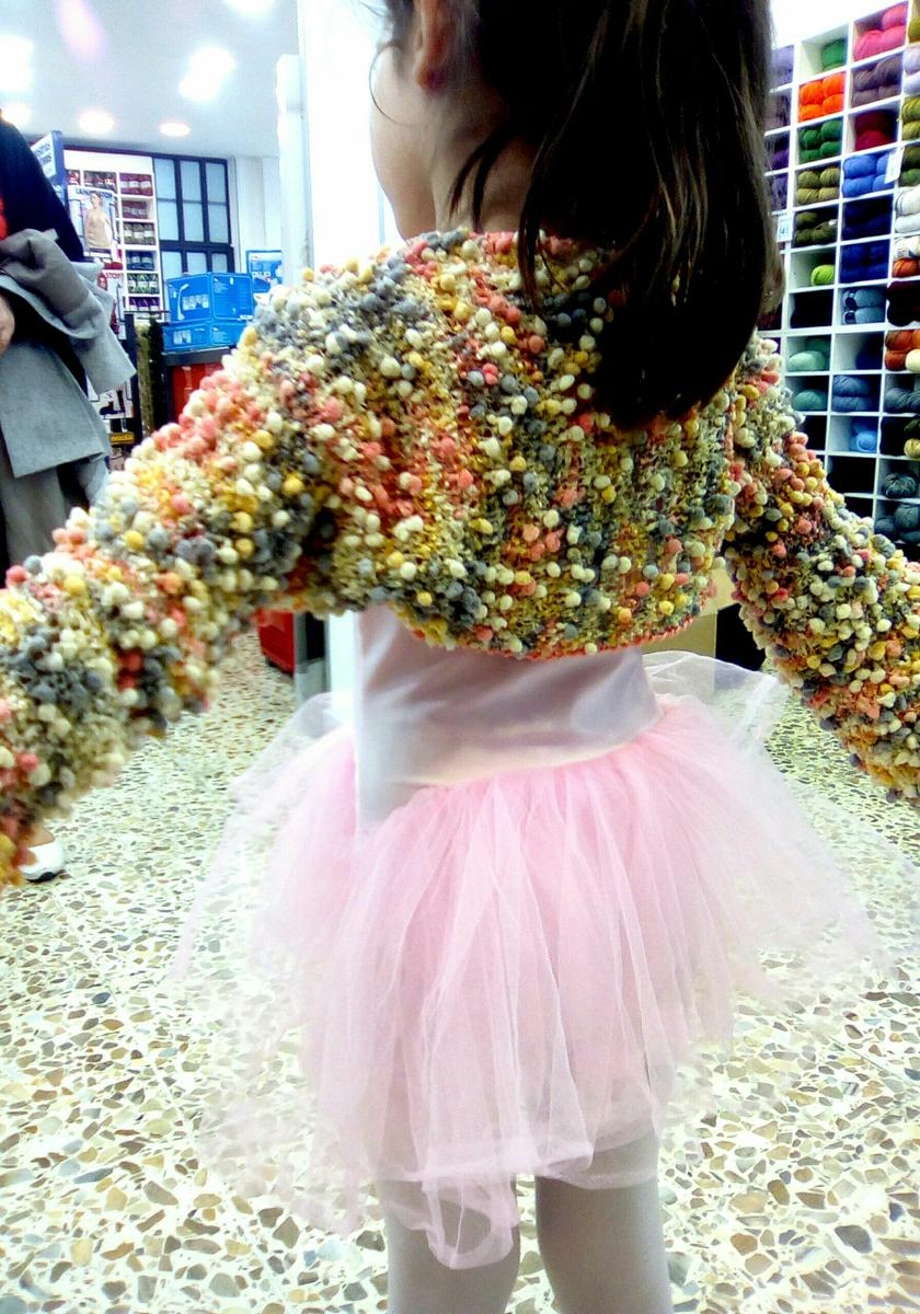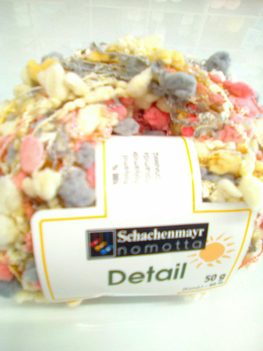 Éste es el ovillo que he usado para hacer la chaquetilla. Es de la casa Schachenmayr y se llama Detail. Una hilatura muy delicada con una fantasía en forma de bolitas como de algodón en tonos jaspeados.