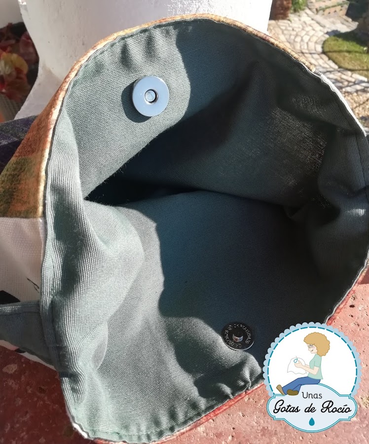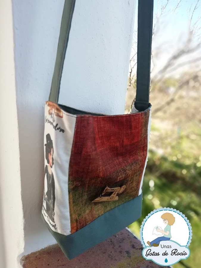 Frontales con la tela del chalequillo, laterales con la imagen de Coco Chanel (perfecta para mi prima modista) y por último forro, base y asa de loneta verde cacería.
