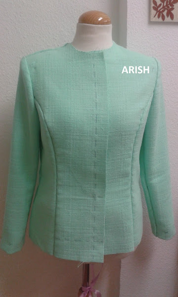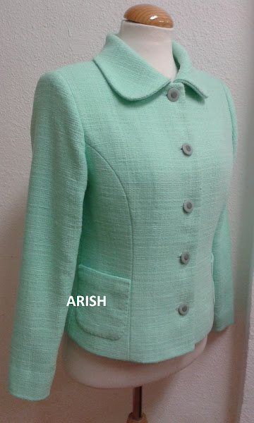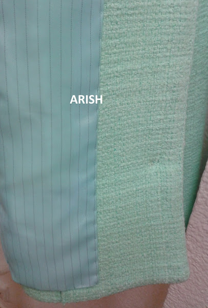 La hechura es la típica "Chanel" con costadillos, cuello cerrado y bolsillitos de plastón.
