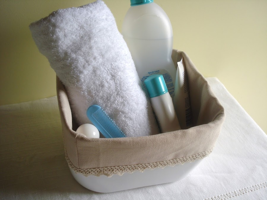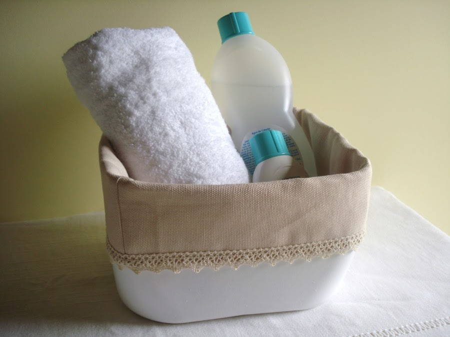Lista para usar en cualquier rincón de casa, aquí con cosas de baño.