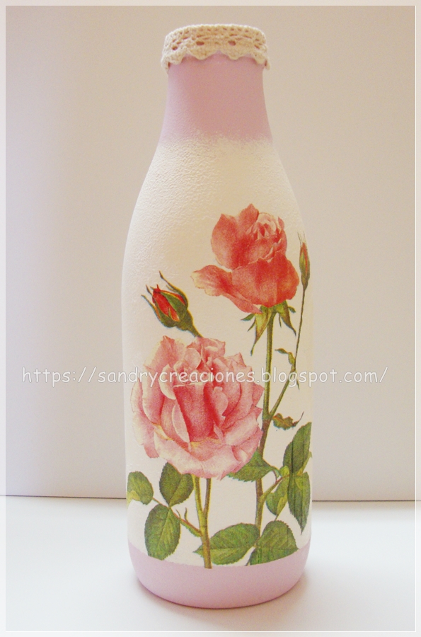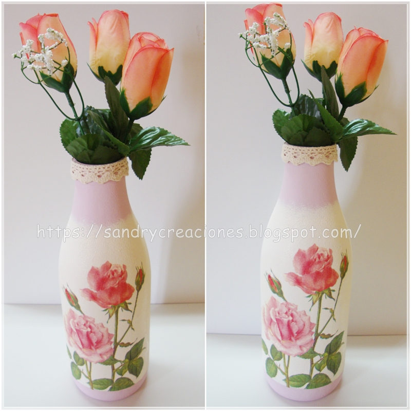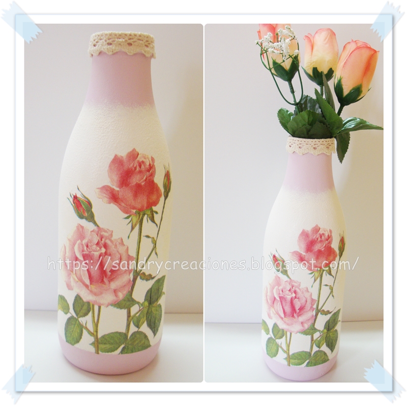 Cuando pasa por nuestras manos alguna botella, bote o recipiente del material que sea y que nos gusta su forma o apariencia nos lo solemos guardar por si se nos ocurre más adelante algún proyecto para hacer con ellos. La botella que utilizamos hoy es una de las que teníamos hace bastante tiempo por casa, nos gustó su forma y la guardamos por si en algún momento nos llegaba la inspiración y queríamos darle un nuevo uso y ese momento llegó con un reto con un grupo de amigas muy queridas (Pulpitas creativas) el tema del cuál era decoupage ya que precisamente cuándo la guardamos lo hicimos pensando en algún día decorarla con la técnica de decoupage. Así que sin más nos pusimos a ello y aquí os traemos el resultado con su tutorial deseando que os guste