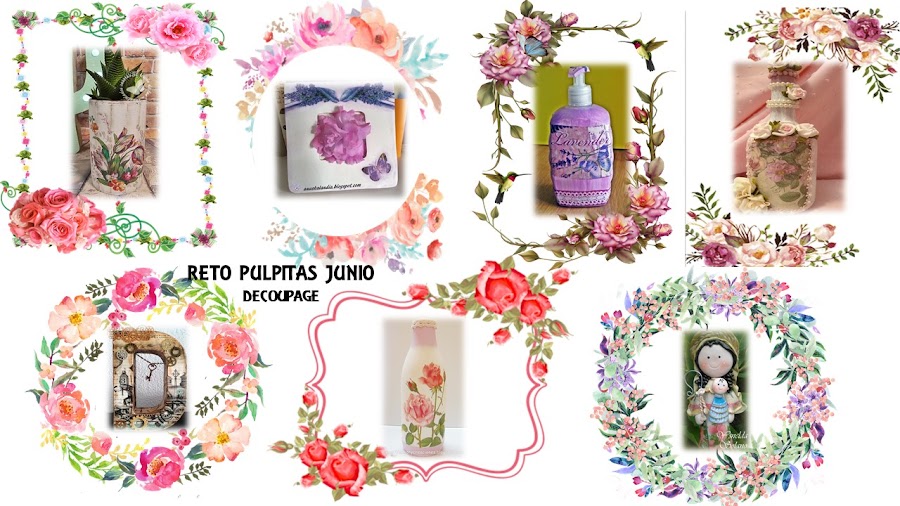 Que os parece? os gusta el cambio que le hemos dado a la botella? Como ya os contamos al principio esta idea forma parte de un conjunto de ideas para un reto con nuestras queridas amigas del grupo de "Pulpitas" en el que esta vez el tema escogido era "decoupage", así que nos vamos a ver que ideas han propuesto ellas , si también queréis ver las ideas que nos proponen lo podéis hacer pulsando en la siguiente imagen: