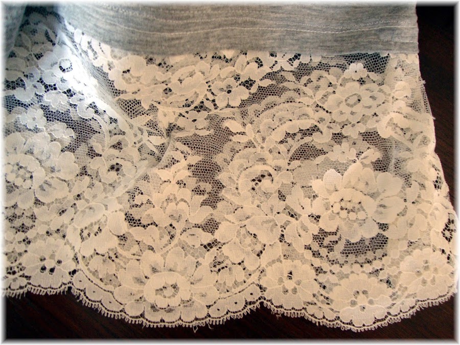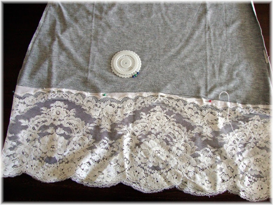 La puntilla está cosida a mano, por el revés, marcando primero con alfileres e hilván.