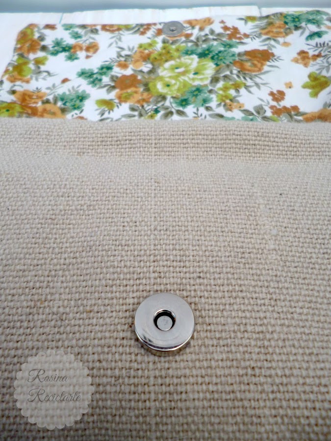 Corte un rectángulo y lo cosí a mano,y otro un cachito mas chico para el forro y le puse un broche imán para cerrar.