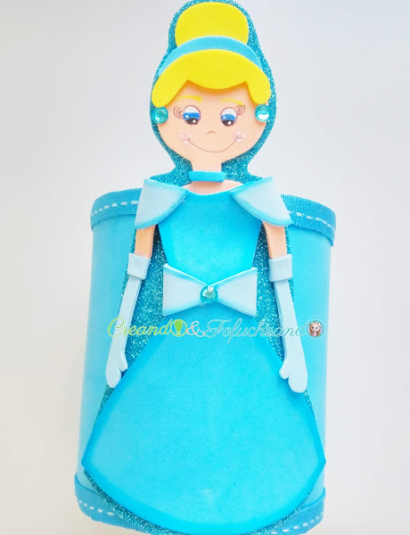 Servidora no se decidía a qué personaje elegir, pero al final con las Musas maquiné una hucha o alcancía reciclada con una lata e hice protagonista de ella, y guardiana de mis euros, jajaja a Cenicienta.