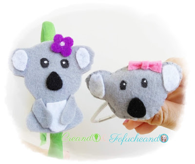 Ideé con las Musas un par de presumidas koalitas como accesorios del pelo para las nenas, en goma y felpa o diadema.