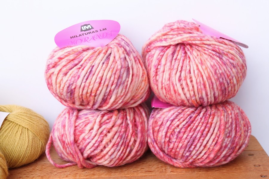 La elección de qué comprar era un poco difícil porque tenía muchas opciones (DROPS, Lanas Alpaca, Hilaturas LM...) pero no tenía en mente ningún proyecto concreto así que al final escogí mis colores favoritos: unos ovillos Puha Plus en un amarillo precioso y otros Morandi en tonos rosas.