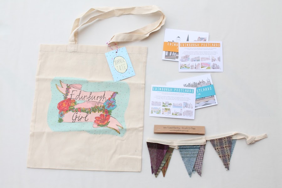 A tote bag with a beautiful logo which says "Edinburgh Girl" by Claire Barclay Draws