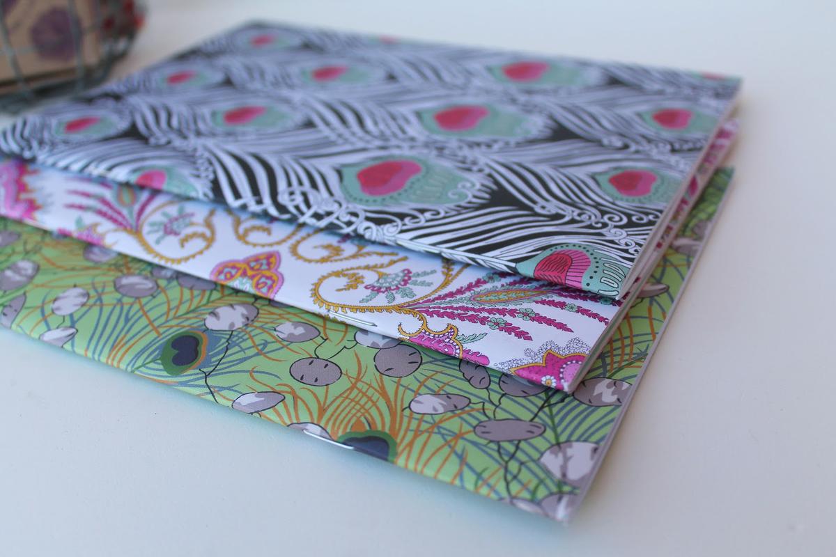 La papelería es uno de mis debilidades y, aunque en realidad iba buscando unos lapiceros del estilo del que os enseñé aquí, no pude resistirme a comprar un set de tres cuadernos con uno estampados preciosos.