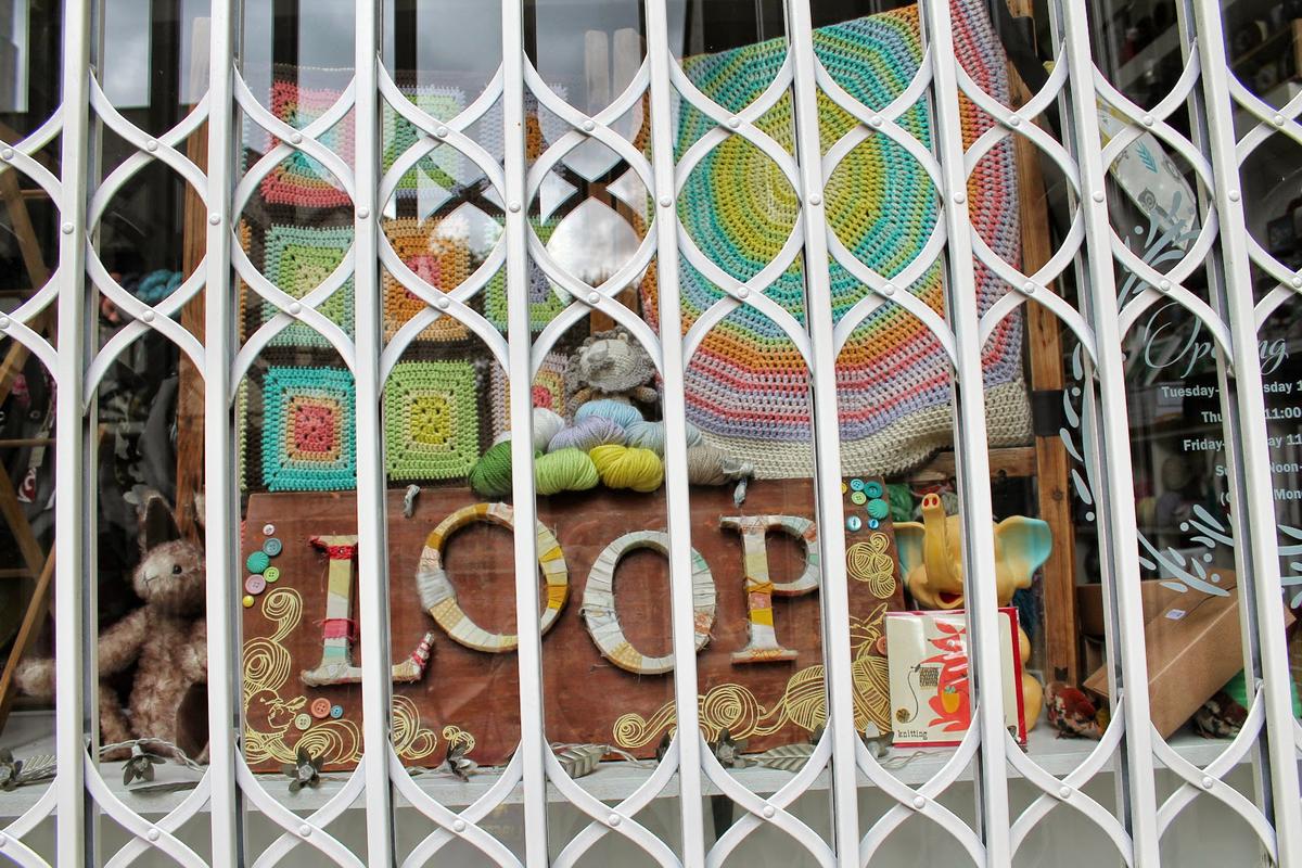 Os podéis imaginar la cara que se me quedó, sobre todo porque era mi último día en Londres... No hacía más que mirar a través de los cristales para torturarme con todo lo que me había perdido: los ovillos de Knit Collage (con lo que me gustan!), las creaciones de Miga de Pan, todos esos libros y accesorios....
