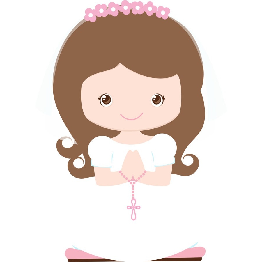 Se trata de la típica imagen de recordatorio, con una niña vestida para la ocasión, un cáliz y flores.