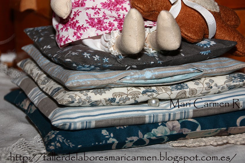 Los almohadones en tonos azules,