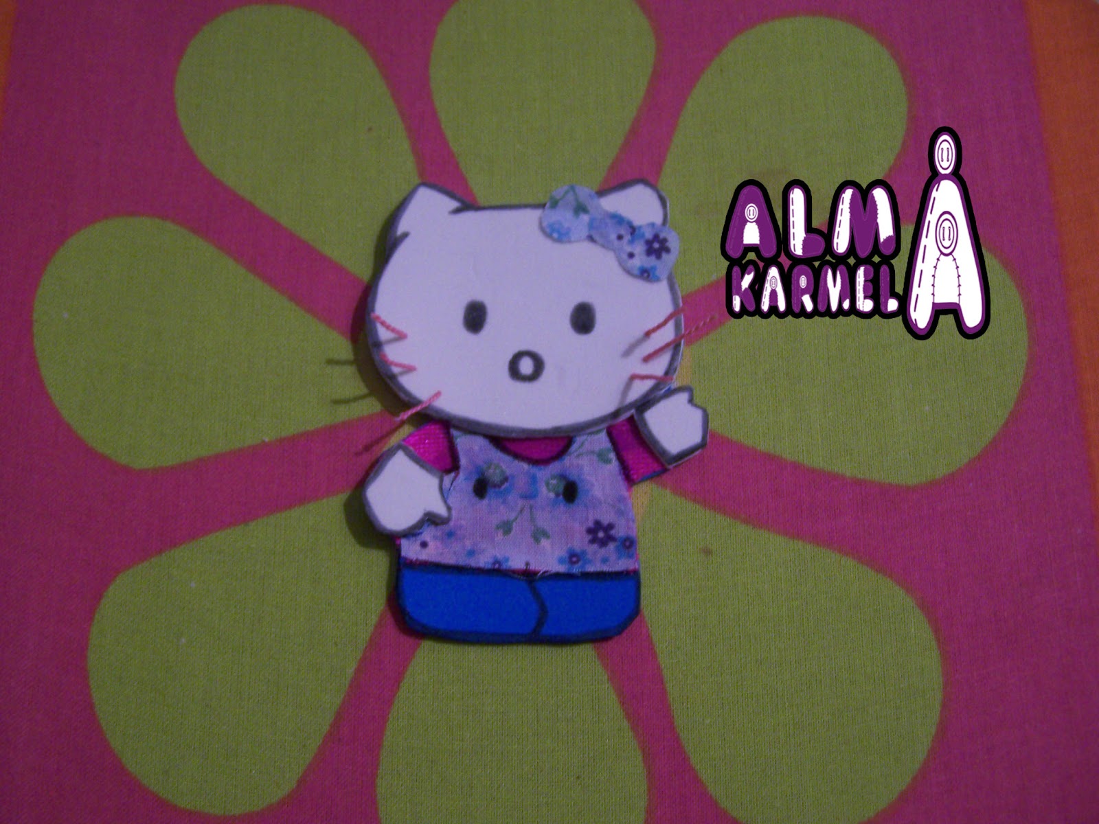 He perdido la cuenta de cuantas cosas de "la Kitty" (cmo dice mi hija), tiene: pijama, camisetas, vestidos, mochila para el desayuno del cole....¡ah! y por supuesto su moto, ejjejje, que no falte, toda rosa e ideal. Aqui la tenéis, una Hello Kitty muy mona, en goma eva y telas de algodón , ¿y qué me decís de esos bigotitos?