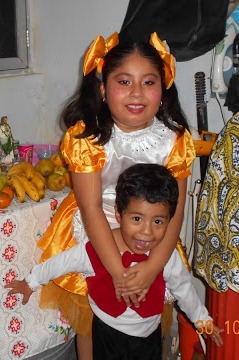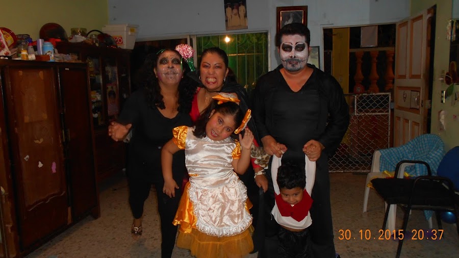 me encanta su pose parece muñeca de verdad, se nota que la locura del disfraz es de familia