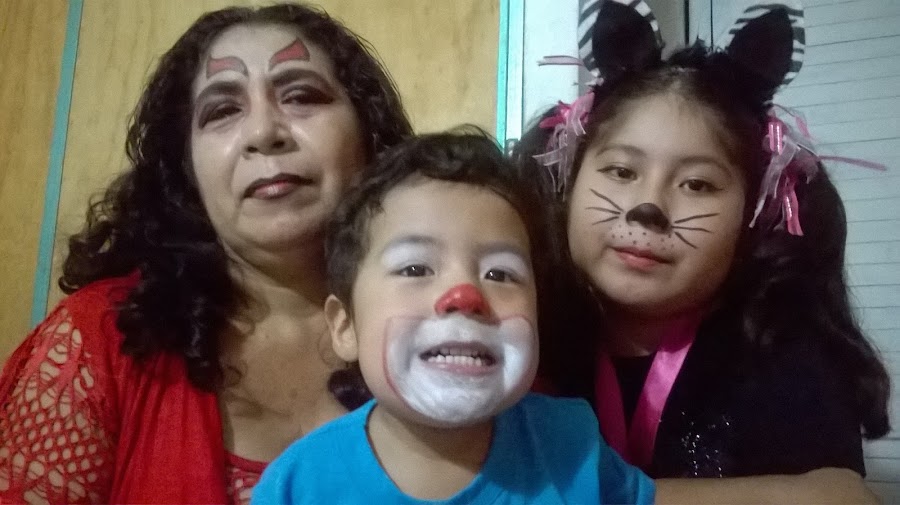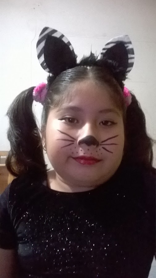 cuando llegamos a la fiesta todo mundo se quedo sorprendido de mi disfraz y más cuando les dije que no me gaste nada en hacerlo. Mi niña iba de gatita, con peinado y maquillaje sencillo pero bonito así me gusta el maquillaje de los niños nada excesivo