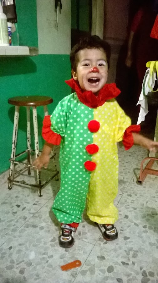 mi niño de payasito ( a mi personalmente me dan miedo solo de verlos) así que evite a mi hijo casi toda la fiesta lo cuido su papá
