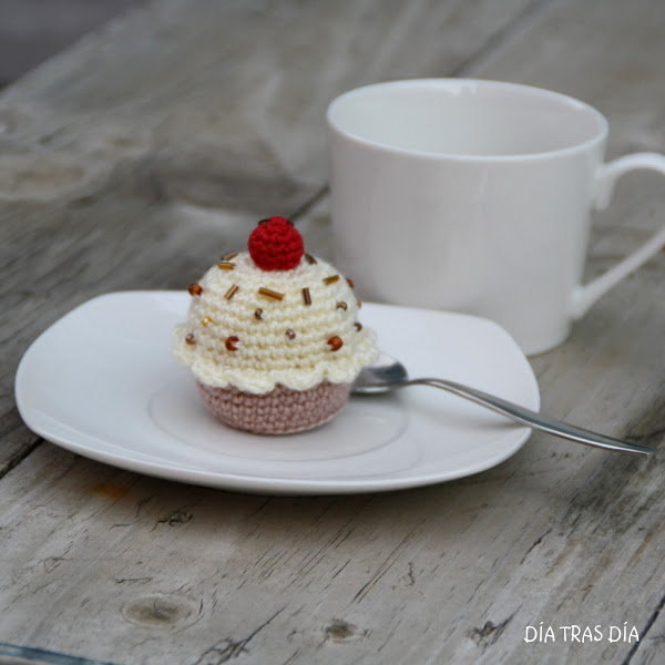 En alguna ocasión os he comentado que yo de crochet no tengo mucha idea, la verdad. Que todo lo que he ido aprendiendo ha sido de forma absolutamente autodidacta, viendo vídeos en YouTube. Y claro, soy bastante limitada en cuanto a repertorio crochetil se refiere. Pero había una cosa que llevaba viendo hace ya tiempo por mis paseos por los distintos blogs y páginas de cosas bonitas que sigo que me tenia enamorada. ¿No habéis visto, ahora que tan de moda están los cupcakes, las versiones tan monas que hay realizadas en plan amigurumi?