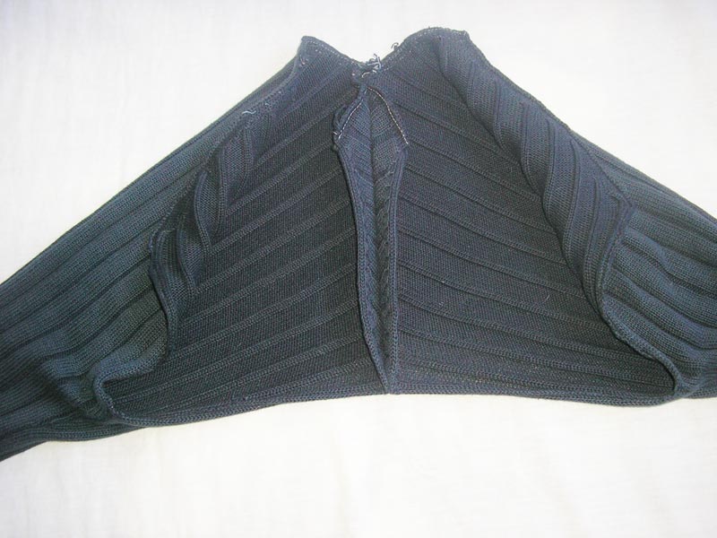 Al unir las mangas por las sisas ganamos mucho largo en la prenda final por eso corté una tira del largo y la puse como cuello de la futura chaqueta.