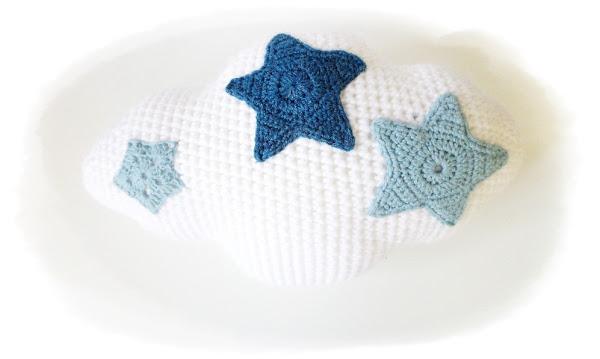 Poco tiempo después terminé mi primer cojín con forma de Nube, de la cual me he dado cuenta de que no tengo entrada! Así que aprovecho esta dedicada a las nubes para enseñaros mi primer "NubeCojín", hecho también con el patrón de la Nube de Gallimelmas e Imaginancias.
