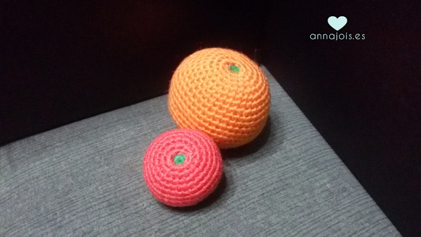 Con este amigurumi sumamos dos más al reto "Mi fecha de Nacimiento" y tachamos un nuevo tema de la lista temática del 2º Reto Trimestral de Tsukeeno"s en el tema "Música" Y os preguntaréis, música?? Pues sí, y es que estas jugosas naranjas llevan en su interior un pequeño tubo de plástico relleno de arroz, con lo que hemos convertido unos simples amigurumis de naranjas en unas simpáticas maracas ;)