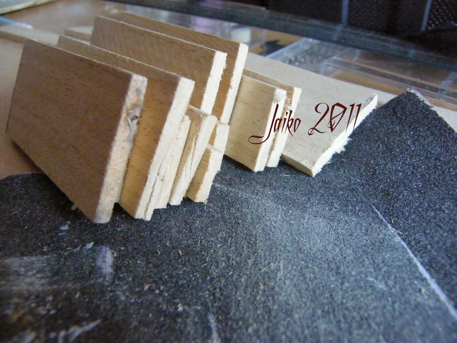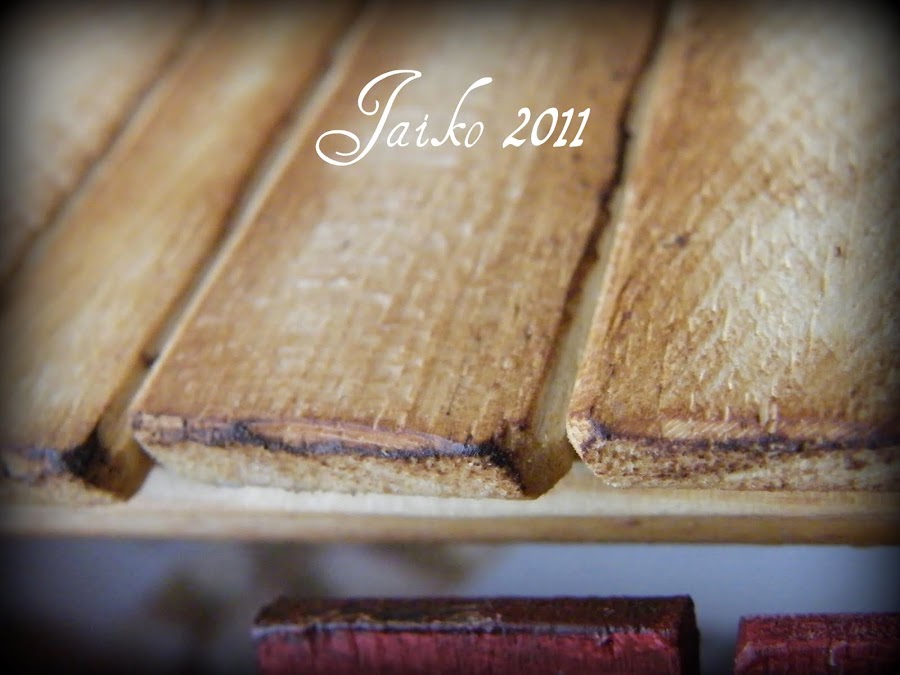 Listones de samba Cortados, lijados... desgastados con cuter... pegados uno a uno...