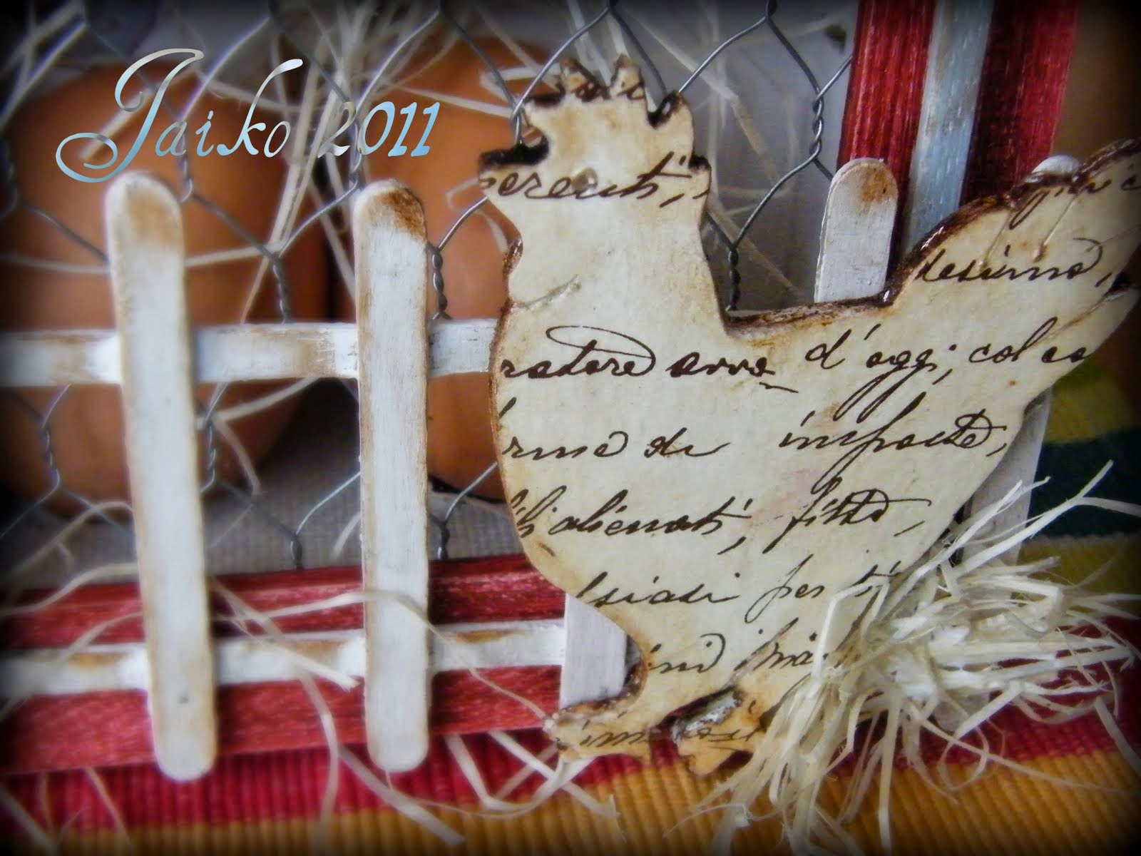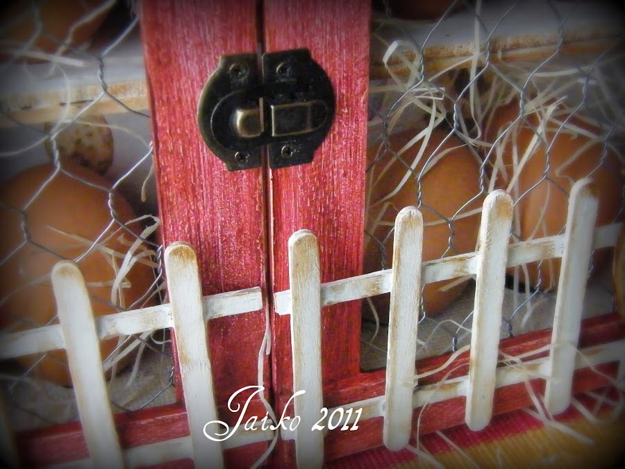 y doña gallina.También le he hecho una valla, el material son unos palillos como los de los helados, pero más pequeños, son para hacer miniaturas, y los venden en paquetes de 100, el soporte de la valla , lo mismo, material para manualidades, ya sabéis, pegar, pintar, envejecer y colocar.