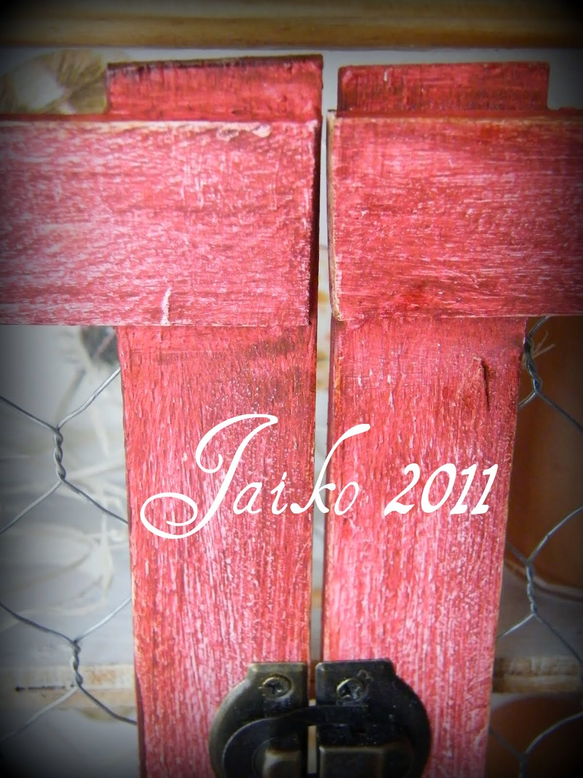 Aquí podéis ver la unión de las piezasLas he dado su imprimación y pintado en color burdeos, luego con una lija suave he ido desgastando la pintura hasta ver el blanco y en algunos sitios la madera.