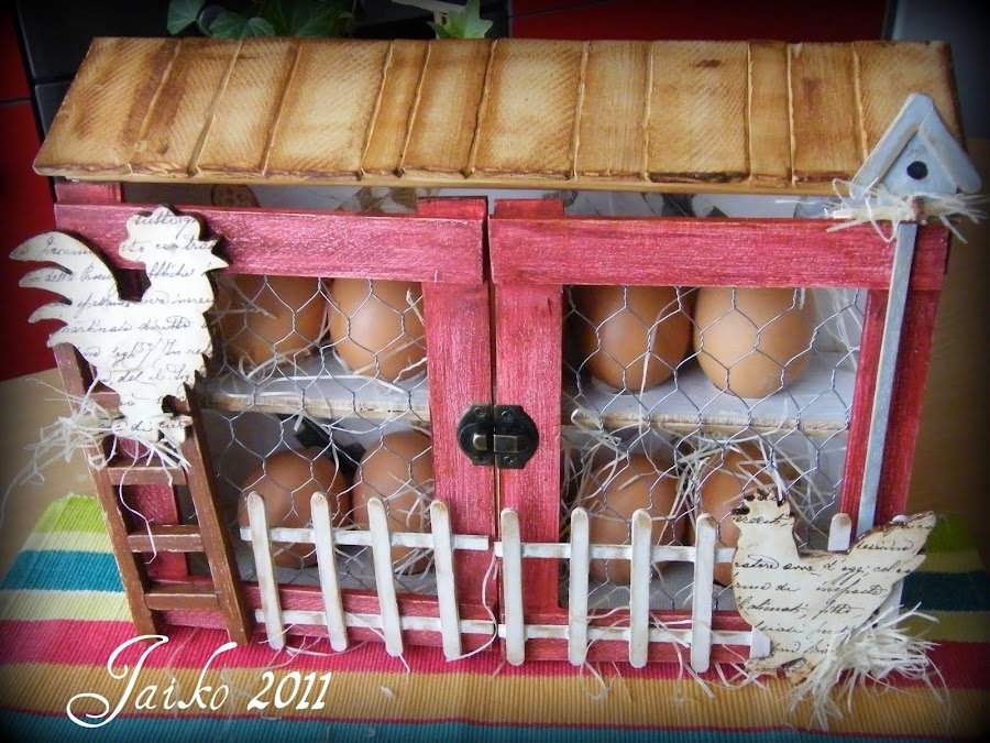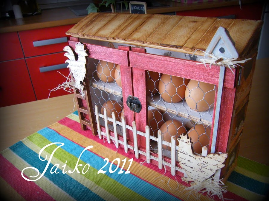 Sí, tal cual, de llevar en su día gambas a guardar huevos, en esto he convertido esta vez una de estas cajitas, en armario - huevera, hace mucho tiempo que tenía en mente esta transformación, y como todo llega, o casi todo, aquí está.