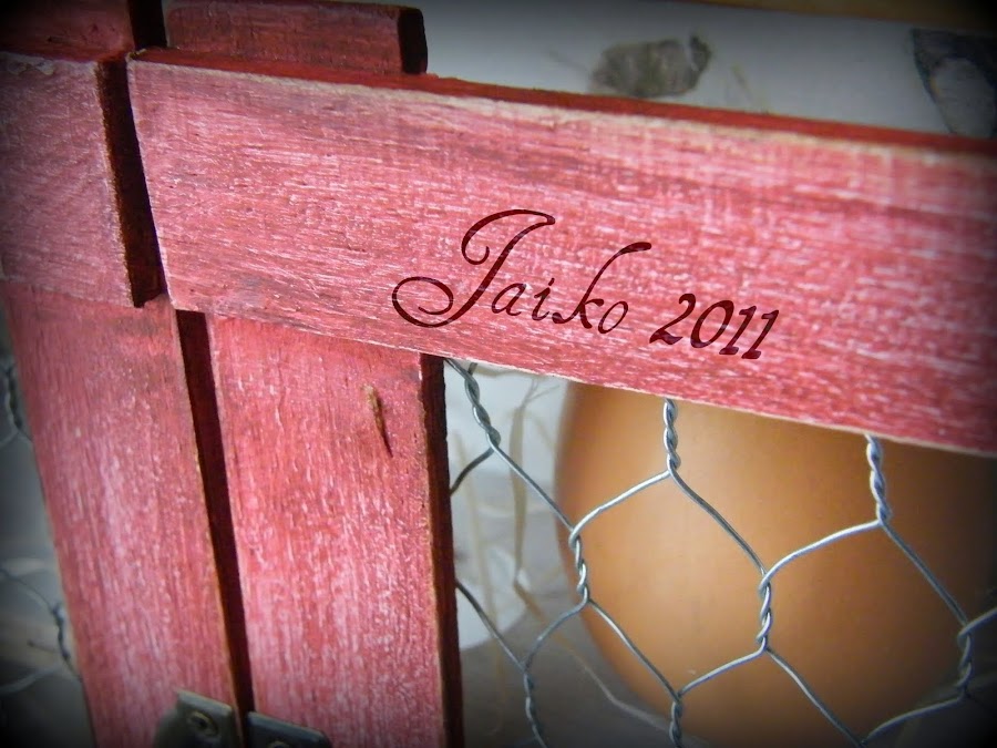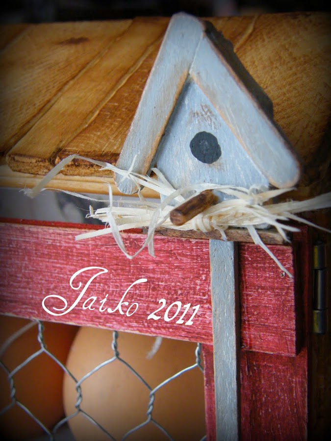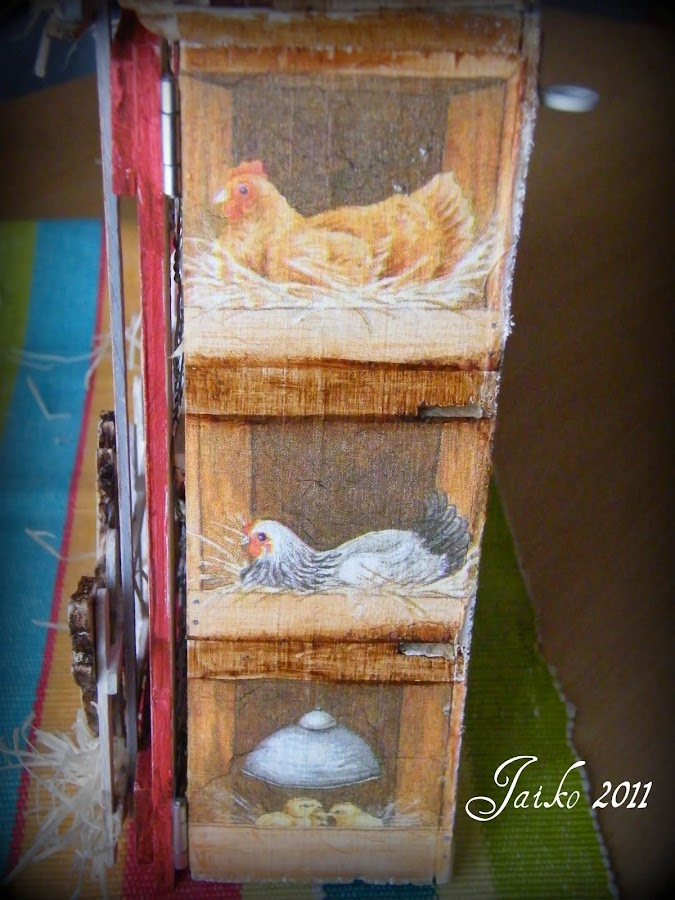 InteriorEl interior y los laterales de fuera lo he decorado con partes de una servilleta que en su día me regalaron y tiene motivos de gallinero.